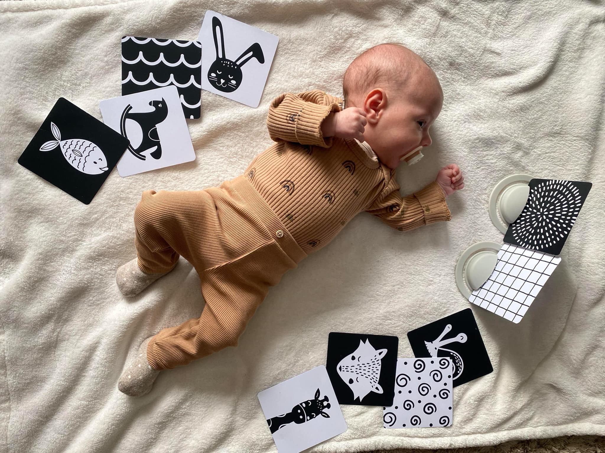 A kisbaba látásának fejlesztésére. A kártyák segítik az agyi fejlődést, elősegítik a figyelem és koncentráció fejlődését.