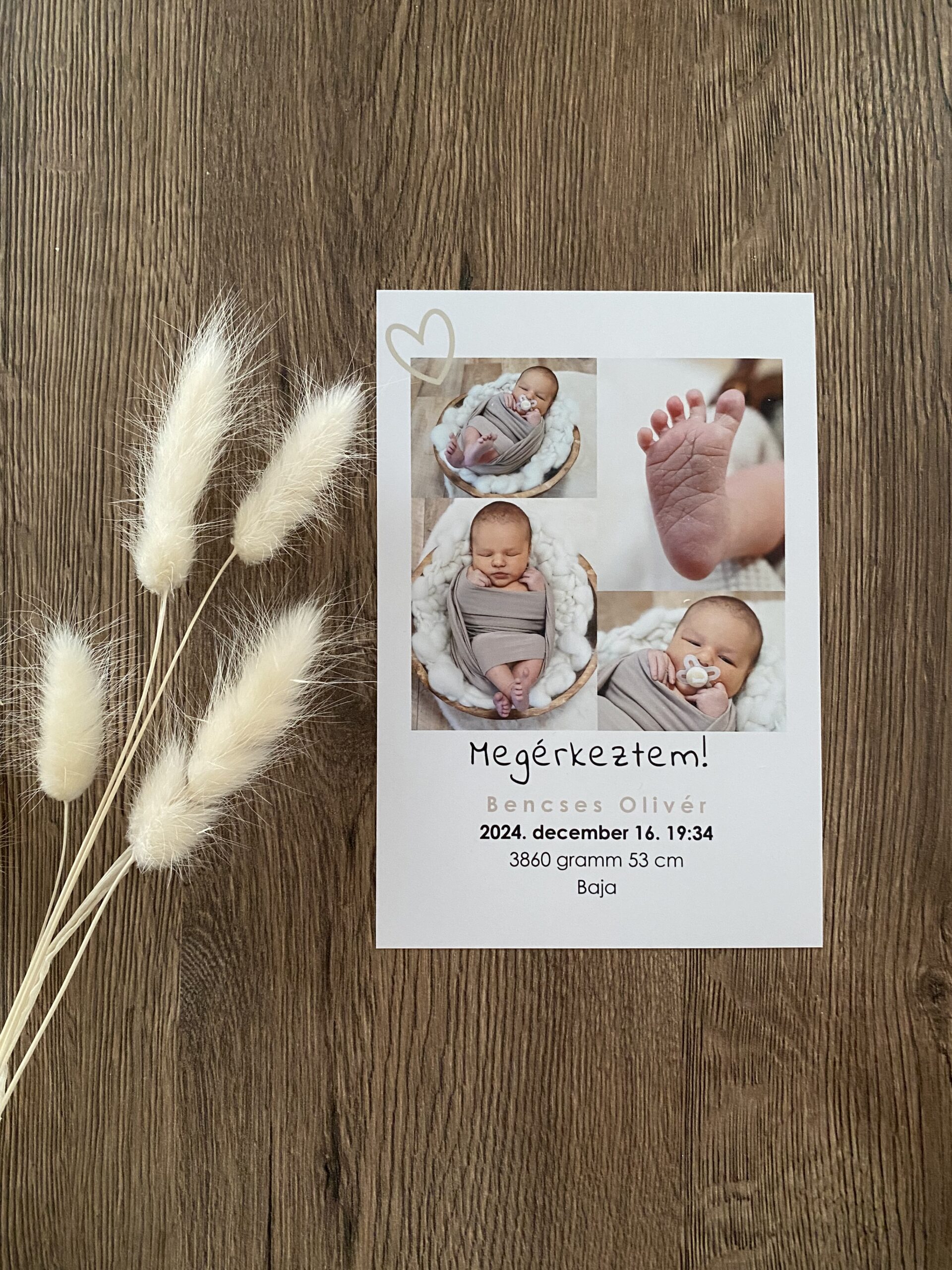 MEGÉRKEZTEM kártya – a baba születési adataival